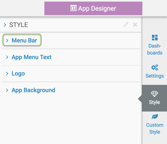 1. On the right side of App Designer, click the Style menu.