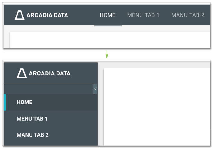 Notice the effect of moving the menu from the top to the left of the application: