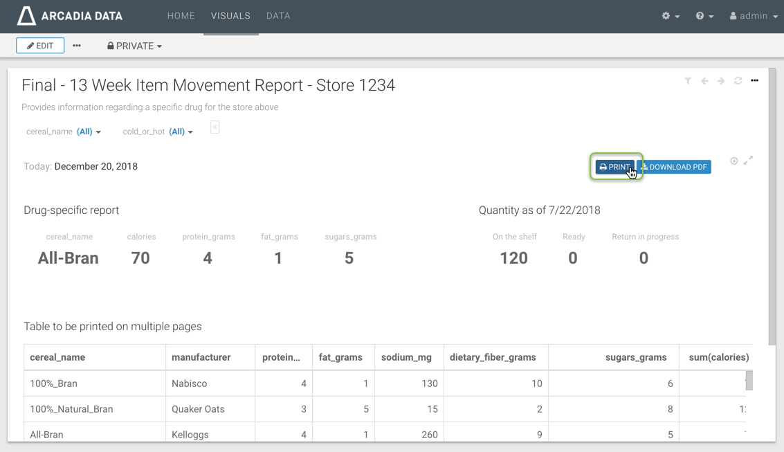 - Add capabilities to print dashboard and download PDF.Use the following definition to create the buttons.