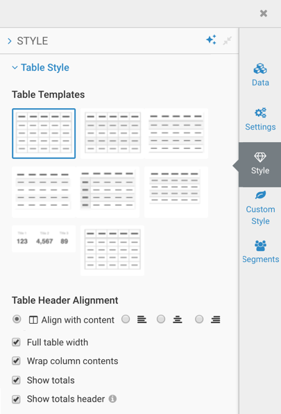 - Add the style arc-print-last-table to the visual. For more information, see Adding custom styles to visuals .