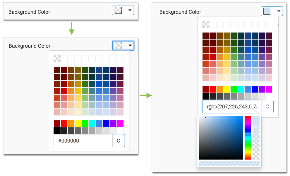 choose from one of the standard system colors, specify a hexadecimal or RGB color, or select