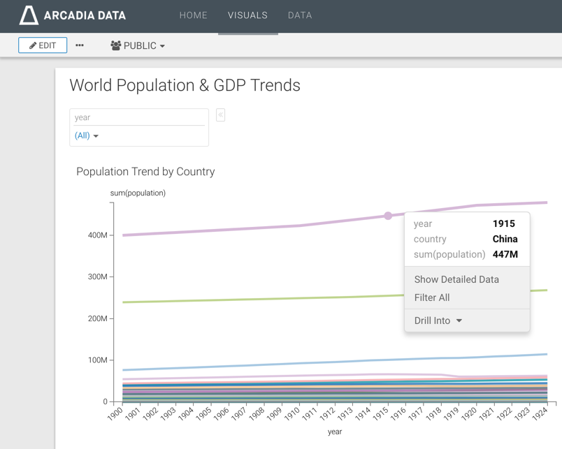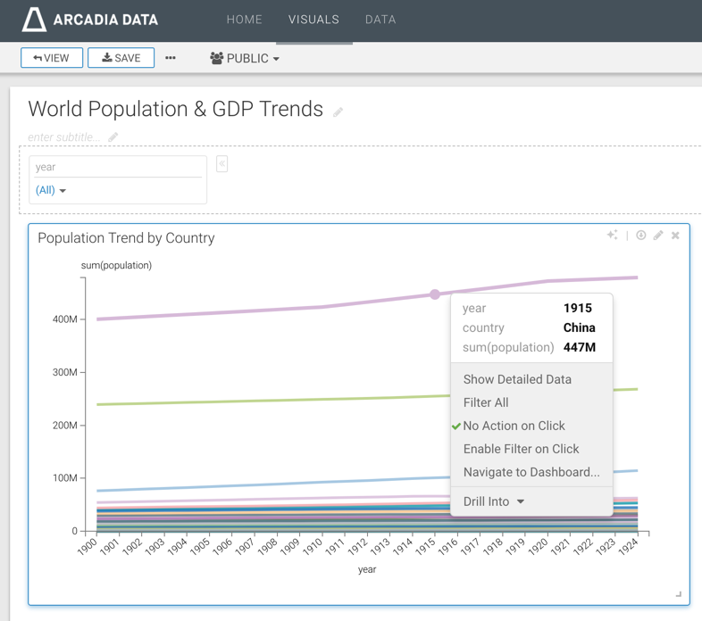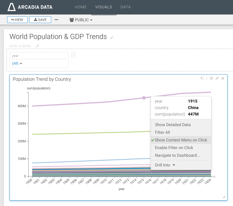 to see the context menu.Notice the three data discovery options in the context menu, Show Detailed Data, Filter All, and Drill Into.