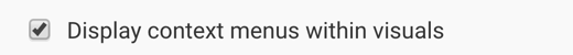 If you disable context menus by de-selecting the Display context menus within visuals setting option, the Show Context Menu on Click changes to No Action on Click.