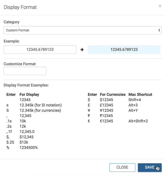To configure unit abbreviation for large numbers, see Using custom display formats for large numbers.