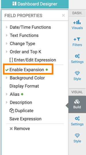 In cross tabulation visuals, you can enable expansion to display subtotal and combined