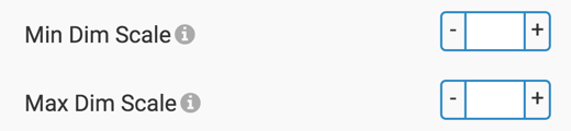 To change the minimum and maximum scale of a continuous axis on dimensions, navigate to the Axes menu, and make adjustments to the two selectors: Min Dim Scale and Max Dim Scaleoptions.