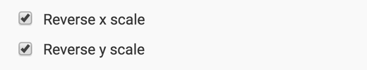 To reverse an axis, navigate to the Axes menu, and select the appropriate options: Reverse x scale, Reverse y scale, or both.