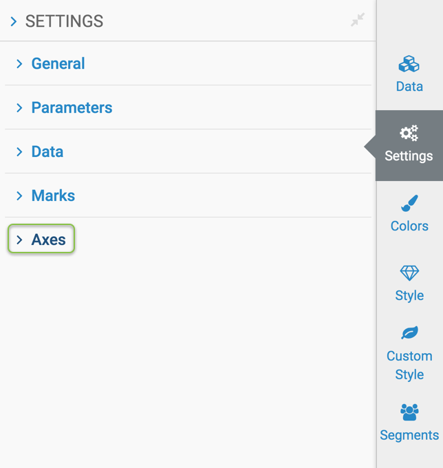 Several display options may be managed from the Axes menu, depending on the chart type in the visual.