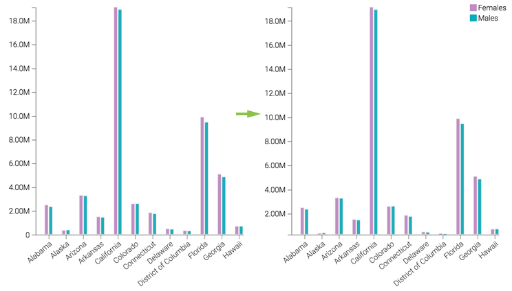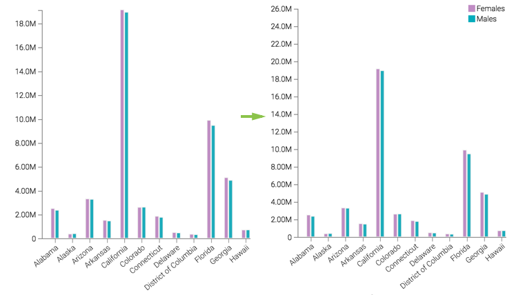 Meanwhile, raising the Maximum aggregate scale value to 26 Million adds blank space over the top aggregate, and scales the whole graph down.