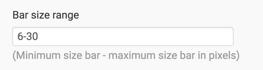 To change the range of widths for bars, navigate to the Marks menu, and change the values in the Bar size range option. The first number is the minimum width, and the second number is the maximum width.