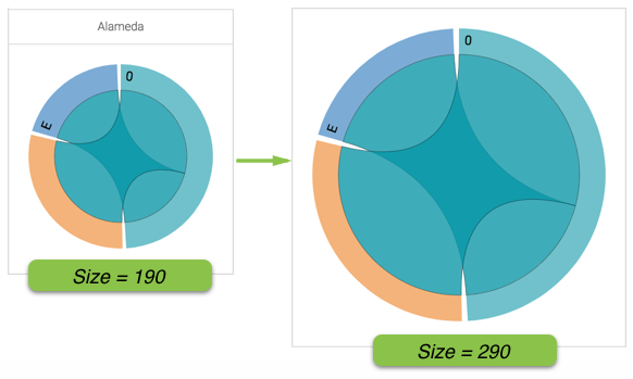 To change the size of a chord visual, navigate to the Marks menu, and change the value of the Minimum size option.