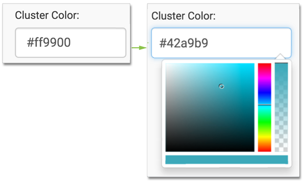 Cluster Color option, either by changing the hexadecimal value, or by selecting