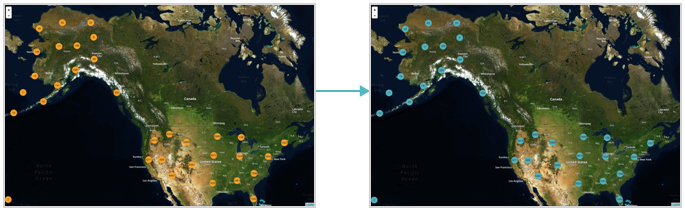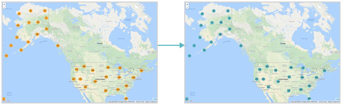 In an interactive map visual, CDP Data Visualization enables you to change the color of
