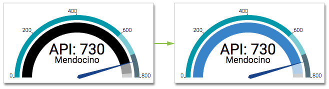 Note how the change in foreground color changes the gauge visual; the main measurement that this option affects is on the inner arc.