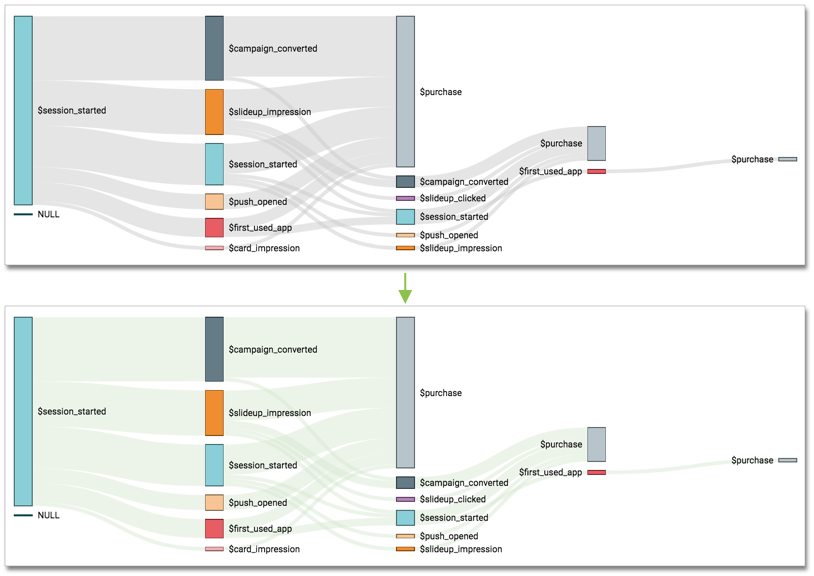 The following image illustrates how a flow visual changes when we change the link color.