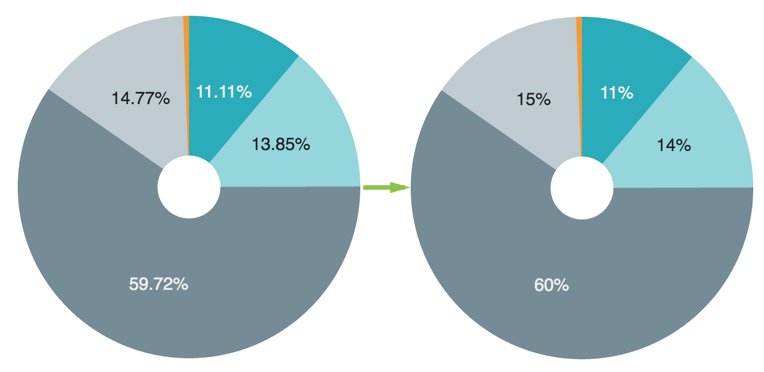 To change the number of decimals in a KPI visual, navigate to the Marks menu, and enter a new value in the Display-in-Decimals selector The default value is 1.