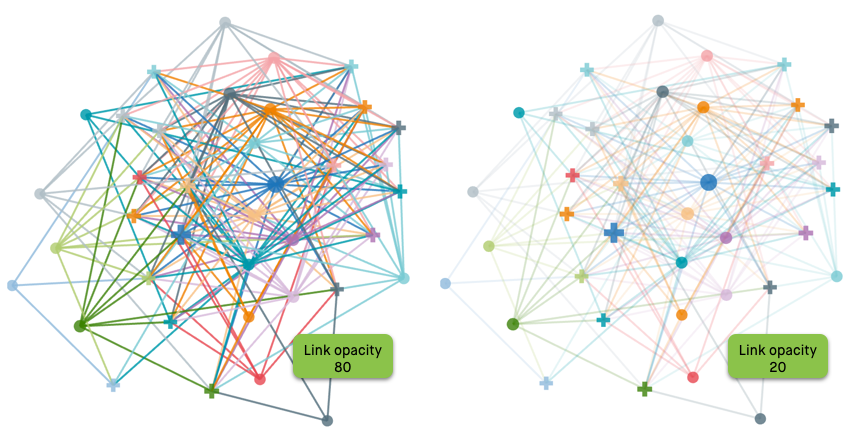 Compare the appearance of a visual with link opacity of 80 and 20.