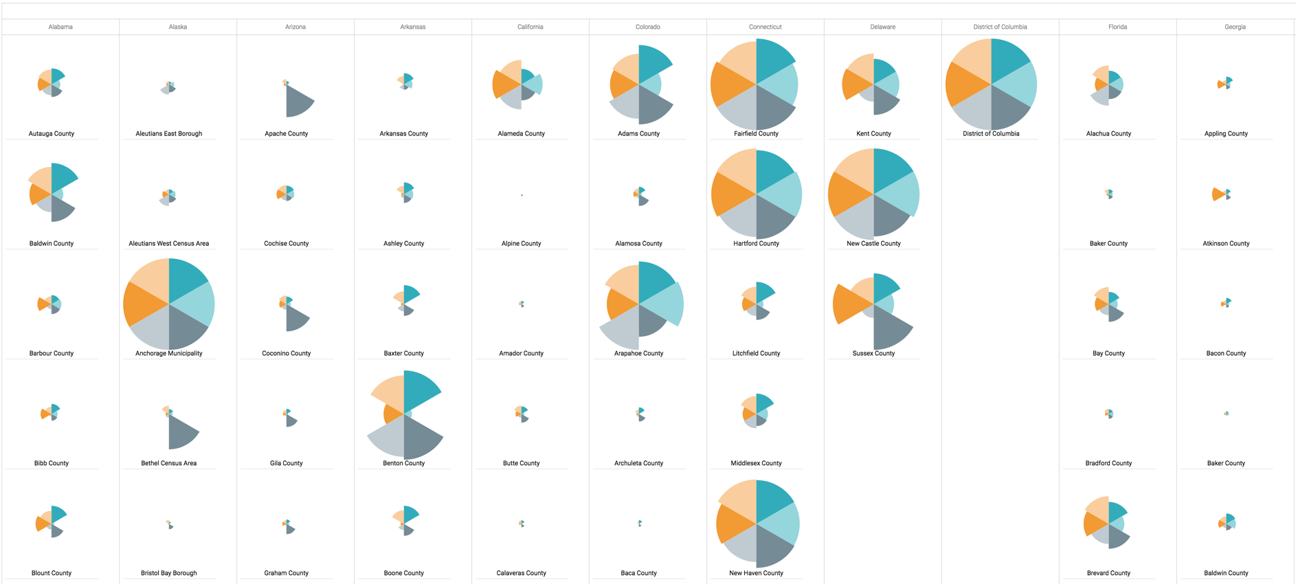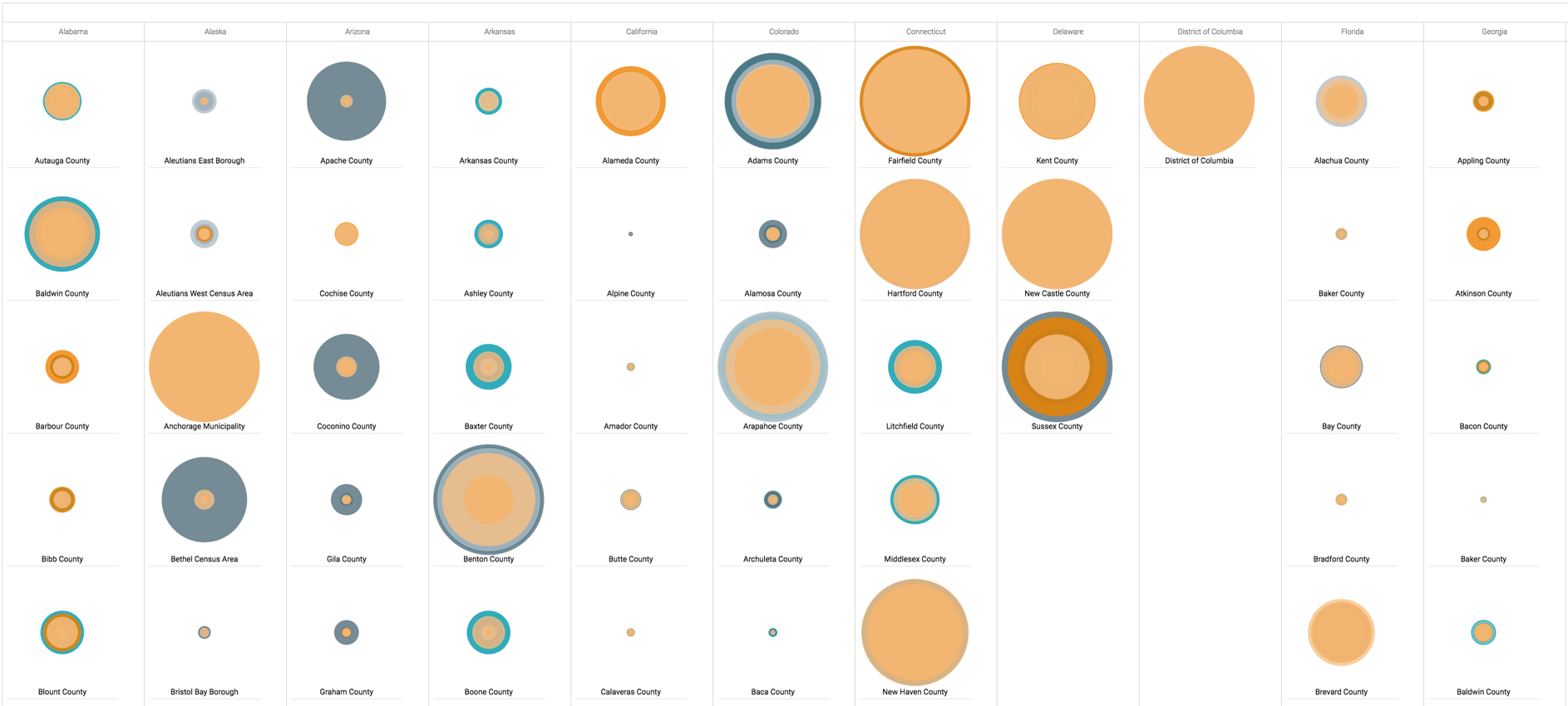 Here is a radial visual with default display.
