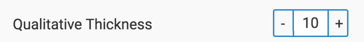By default, the width of the qualitative (outer) arc of the visual is set to 10 pixels. To change it, navigate to the Marks menu, and enter the new value for the Qualitative Thickness option.