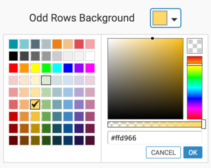 In the following example, notice the difference in the table rows before and after changing the background color of the odd rows.