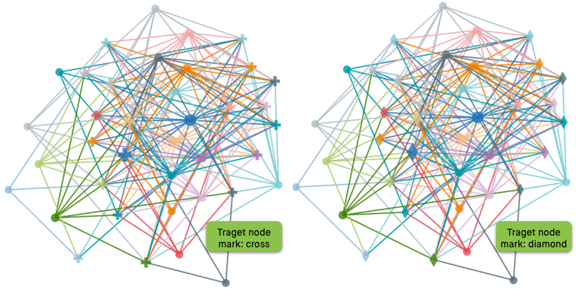 Compare the appearance of a visual with target node cross mark, and target node diamond mark.