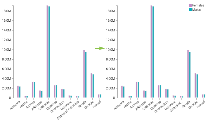 For example, we decreased the text length from 25 to 15; the impact is visible on the columns labeled "District of Columbia":