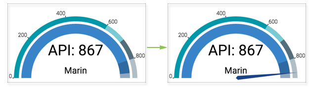 In a Gauge visual, CDP Data Visualization helps you to display the measure mark as a needle