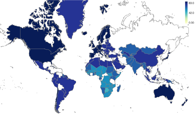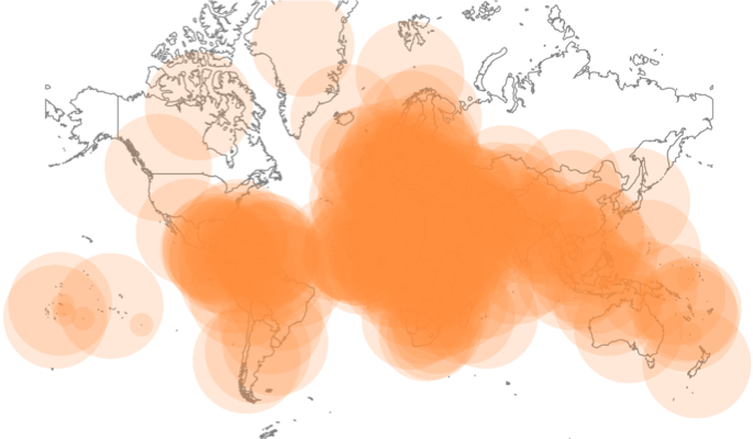 Compare the appearance of world map as a choropleth map, and as a map with bubble marks.
