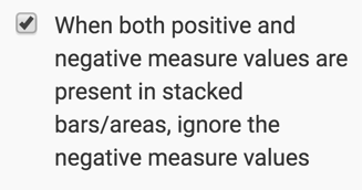 If a visual has both negative and postive values, you have an option not to display negative values. This task applies to stacked Bars and Area visuals.