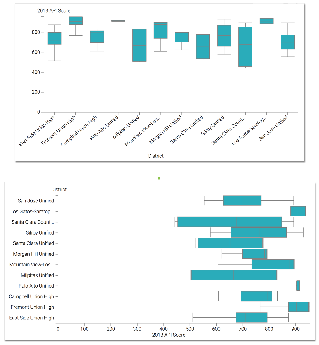Here is an example of how the visual changes when the box plot orientation changes from vertical to horizontal.