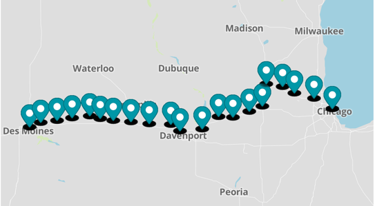 In a map route, you can choose pin types from a dropdown or add your own custom