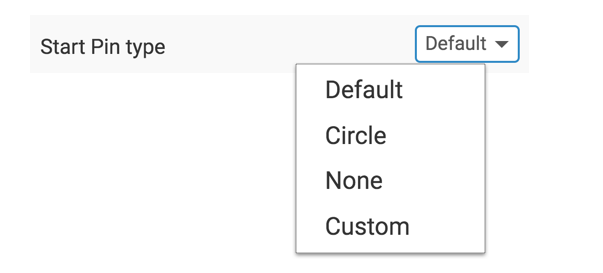 In a map route, you can choose an existing start pin type from a dropdown or add your