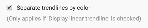 To separate all the linear trendlines and plot them in the same color as main data they describe, navigate to the Marks menu, and select Separate trendlines by color.