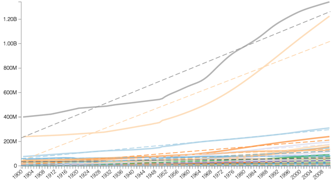 Note that the trendlines of visual match the color of the line dimension they describe.