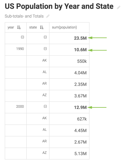 Before selecting this option, notice that the subtotals and combined total appear at the bottom of expanded rows.