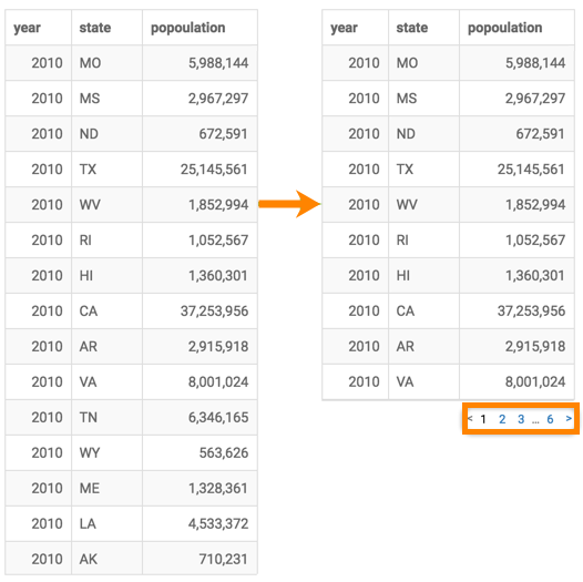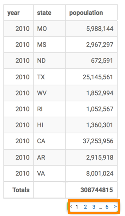 With very long tables, scrolling down can become annoying. CDP Data Visualization allows you to display pagination for your tables, but by default, tables do not display page numbers.