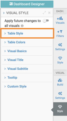 Style in the VISUAL section of the menu