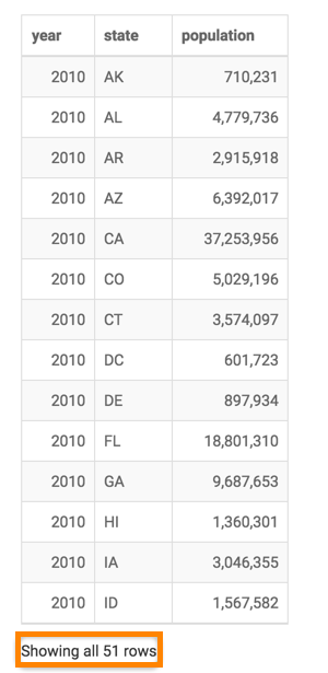 CDP Data Visualization allows you to display the number of rows in your tables.