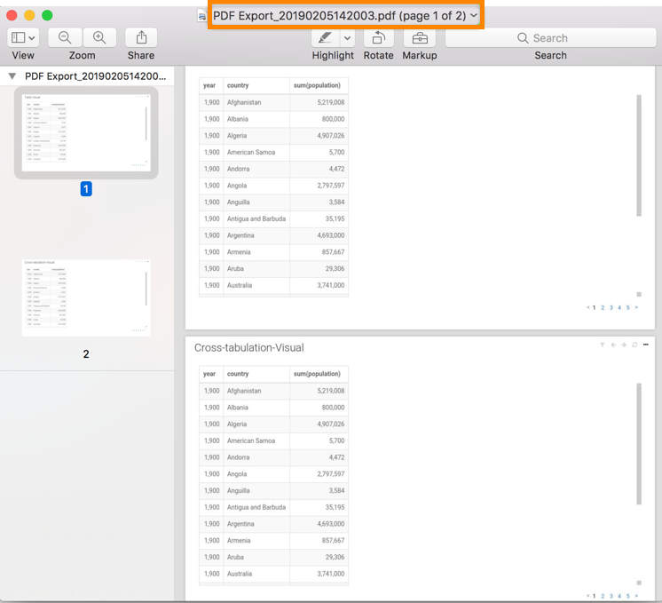 In this example, the generated filename, PDF Export_20190205142003,