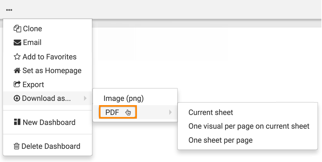 - In a dashboard, click the (ellipsis) icon at the top left