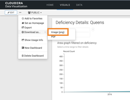 CDP Data Visualization (CDV) enables you to save the current sheet of a dashboard as a