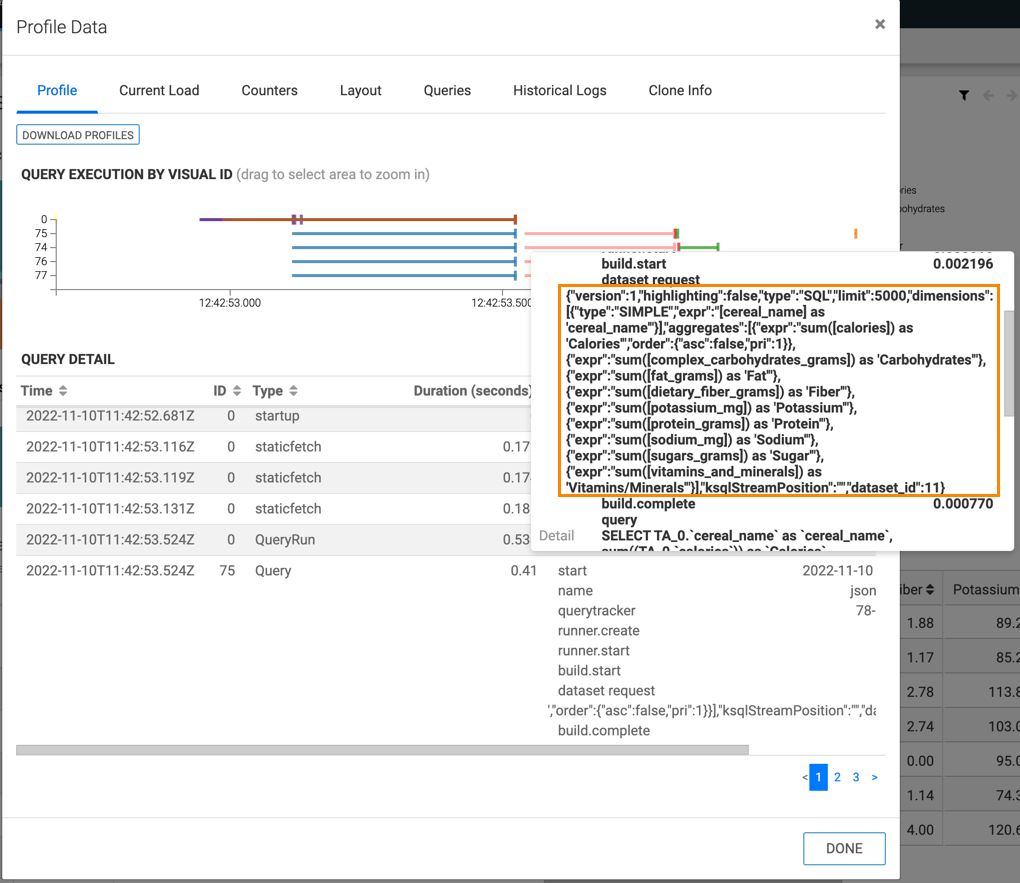 To avoid creating Data API requests from scratch, CDP Data Visualization provides access to details of the data requests.