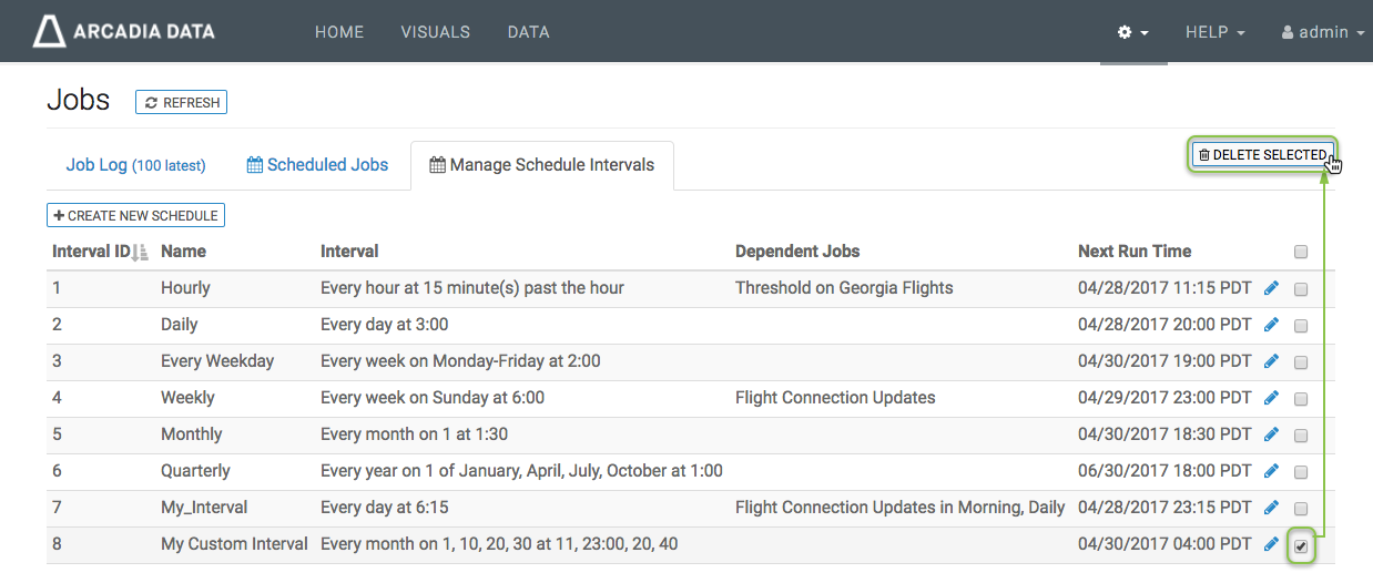 to delete. To delete all intervals, click the checkbox on the right side of the list