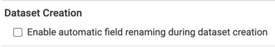 - Under Dataset Creation, check the Enable automatic field renaming during dataset creation option.