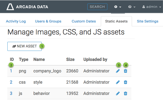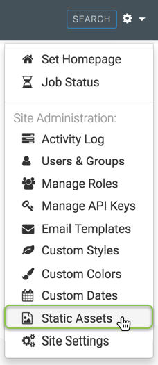and JPG format), CSS files, and JS files as Static Assets. You can subsequently use them across