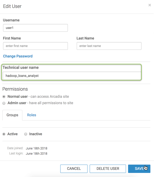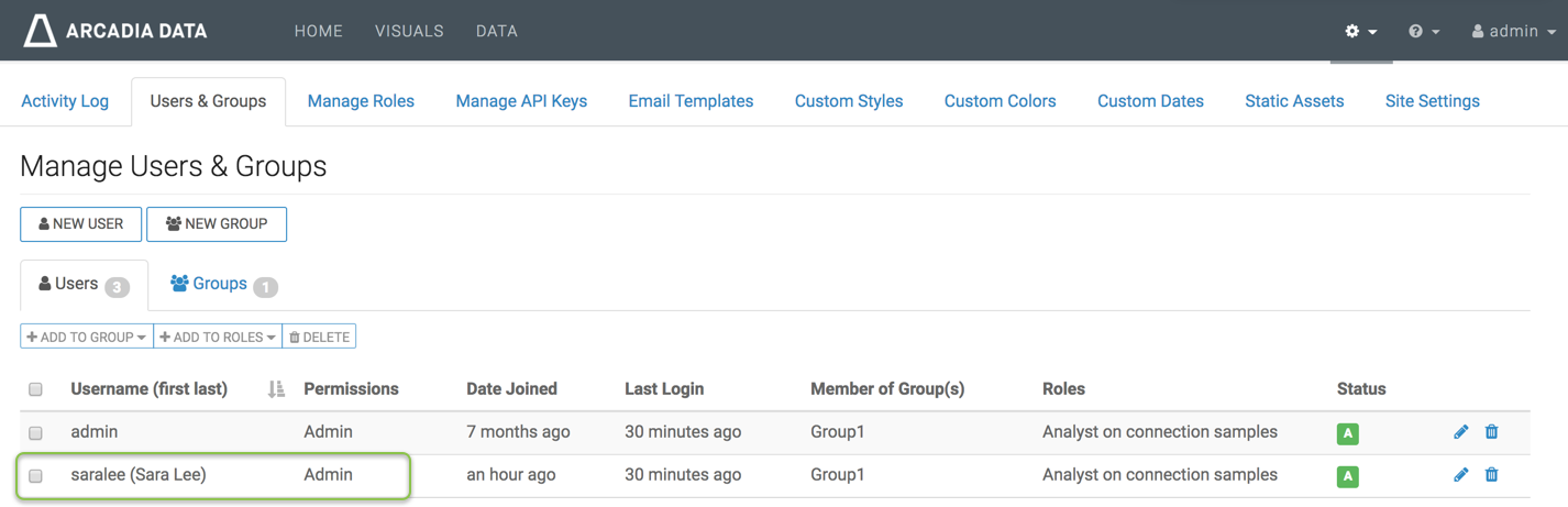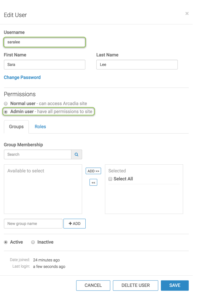 - Under Permissions, click Admin user to change the permissions from a normal user to an admin user.