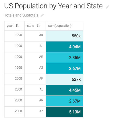 The visual appears with a + icon in the year and state columns. This indicates that you can expand the data.