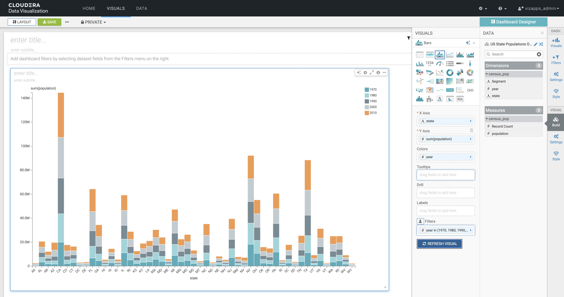 By default, a table visual is selected. For more information on the Visual Builder, see the overview of Visual Builder.