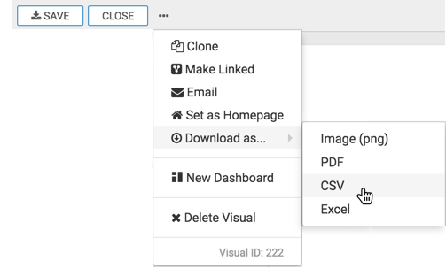 CDP Data Visualization enables you to save the data used in visualizations as CSV
