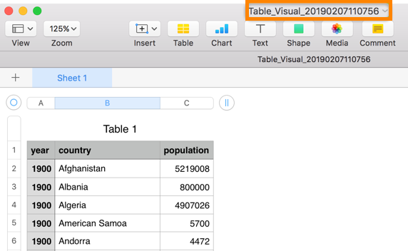 In this example, the generated file name (Table_Visual_20190207110756) has the